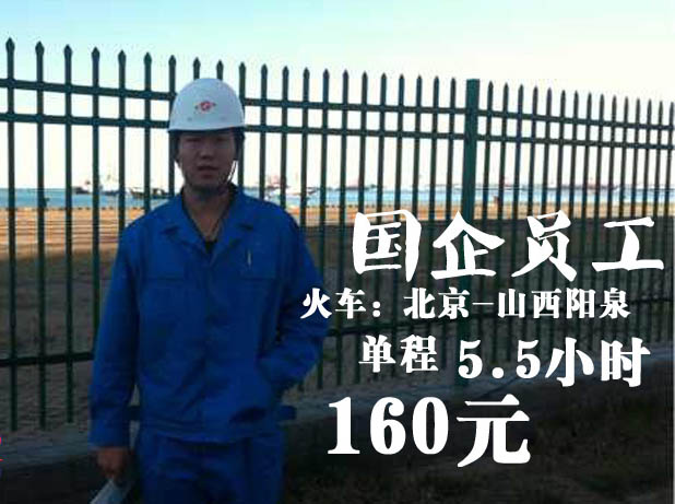 坐班车从公司到北京西站免费(约3.5小时)坐火车到山西阳泉160元(约2个小时)