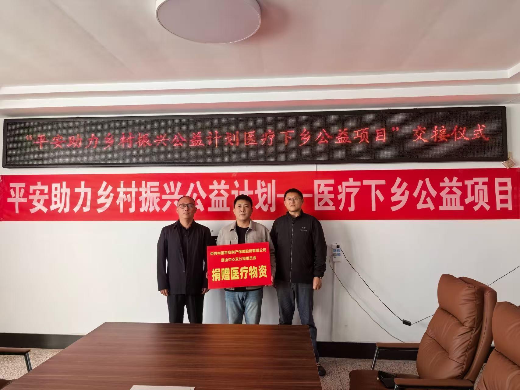 活动中,平安产险唐山中心支公司向十里海养殖场捐赠多套医疗物资,包含村医服务包、拉杆急救包、村民小药箱等,满足了卫生室日常运行和村民常见疾病诊疗需求,让村民在家门口享受便捷、安心的医疗服务。