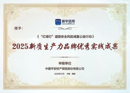 在近日举办的“2025企业家博鳌论坛”期间,“2025品牌信用建设论坛”同期举行。论坛以“信用赋能品牌‘新三化’”为主题,旨在推动信用体系与现代化产业体系建设深度融合。会上,一批具有行业代表性的实践案例获评为“2025新质生产力品牌优秀实践成果”,涵盖金融、文旅、生态等多领域。平安产险“红绿灯”道路安全风险减量公益行动作为金融领域案例入选。